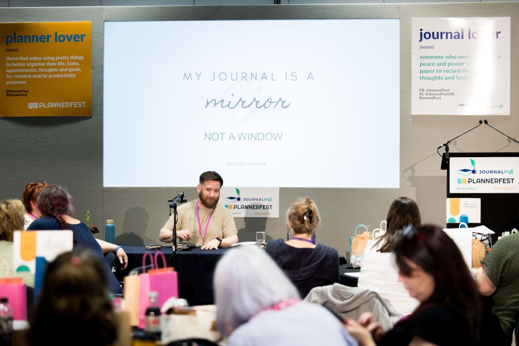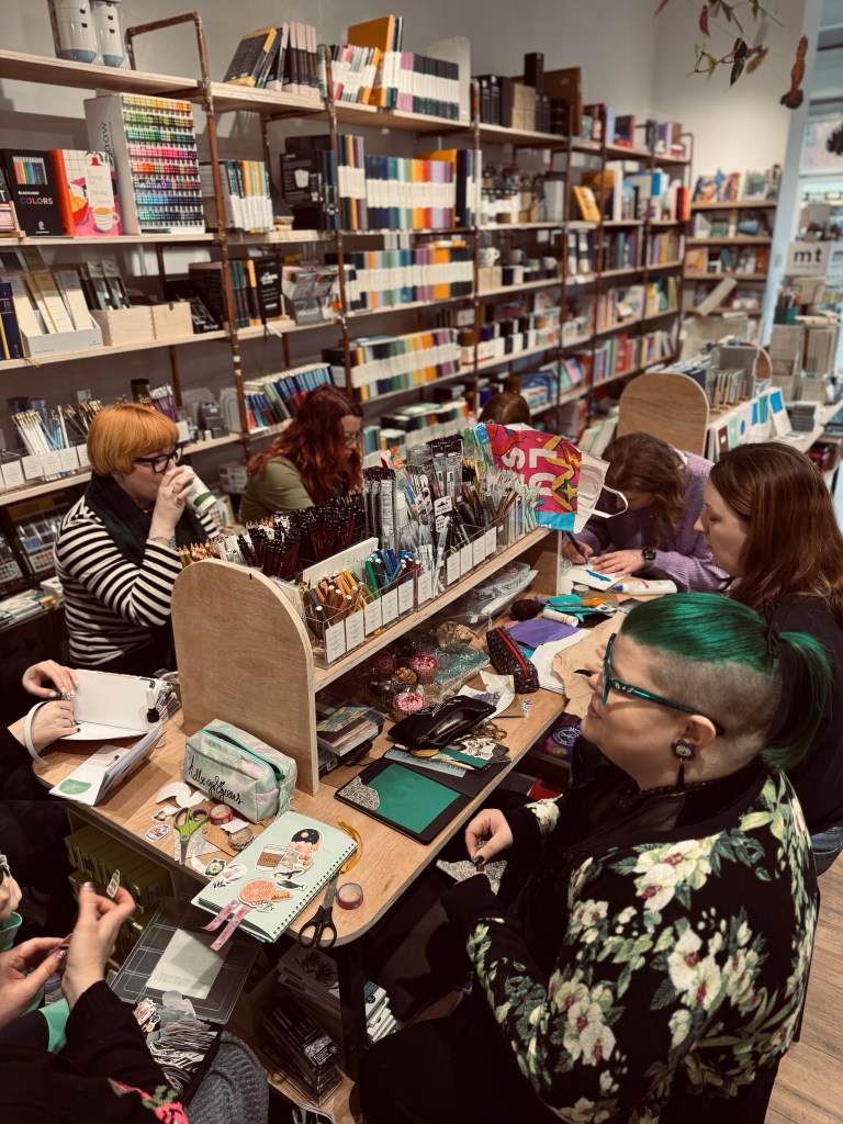 Since 2023, I have hosted Journal Club, a monthly meet-up in Hunter Paper Co; Northern Ireland’s leading independent stationery store. A casual and welcoming gathering of fellow journaling enthusiasts, it’s a comfy and creative couple of hours. Ideal for new and seasoned journalers, just bring yourself, your journal and an inquisitive mind. Visit Hunter Paper Co to see their amazing range of letterpress cards and carefully curated international stationery and to learn more about Journal Club.I host regular mindful & creative journaling and junk journaling workshops in Belfast’s Crescent Arts Centre. For folks who want to learn more about journaling and the benefits it can bring; or who just want a fun day making new journals from scraps, my workshops are ideal for newcomers. All introductory materials are included in your booking but I encourage everyone to bring all those random paper and ephemera oddments to personalise your new journal. For more information on my workshops, please click here.Together with my friend Nuala of Lacuna Moon, we created PaperMoonCon, Ireland’s first journaling and planning event. A one-day mix of talks, demonstrations and workshops with attendees coming from across the country. I’ve been very lucky to have been invited to speak and participate in some of the UK’s biggest journaling events, including JournalFest 2024. Getting to share my experiences and thoughts on this habit and practice that we all love has been inspiring and humbling and I look forward to more in the future.